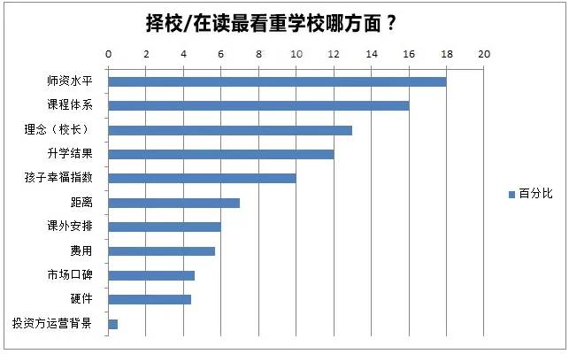 以上是對選擇國際化教育的家庭的一項調查,對于在讀家庭來說,擇校最看重的是師資水平,對老師的關注度最高,對于高中生家長來說,課程體系是關注的要點。
