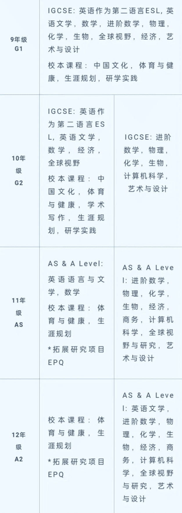 · 開設科目:數學、拓展數學、經濟、物理、化學、藝術/設計,合計6門