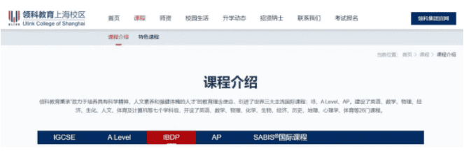 △上海領科官網關于學校課程介紹的部分截圖,其中AP課程為選修課,學校并未開設AP課程班;圖源:學校官網