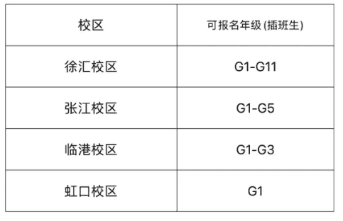 家長在網上注冊時,在四個校區中只能選擇一個校區進行申請。各校區插班生目前可報名的年級為: